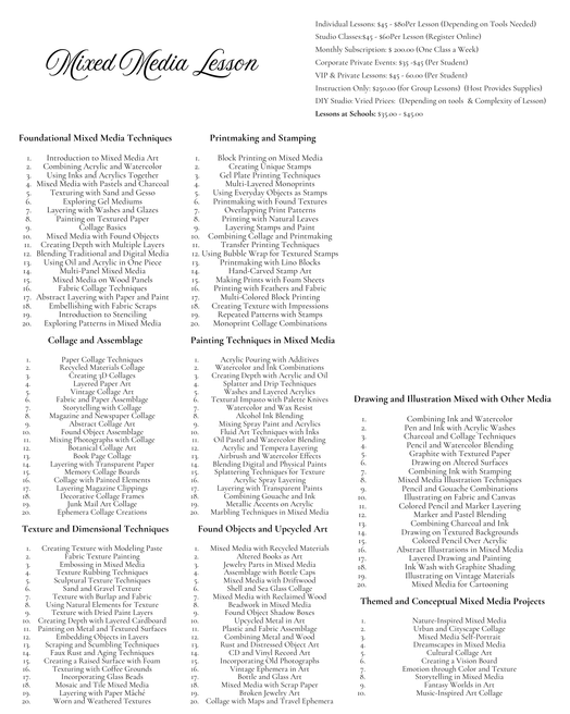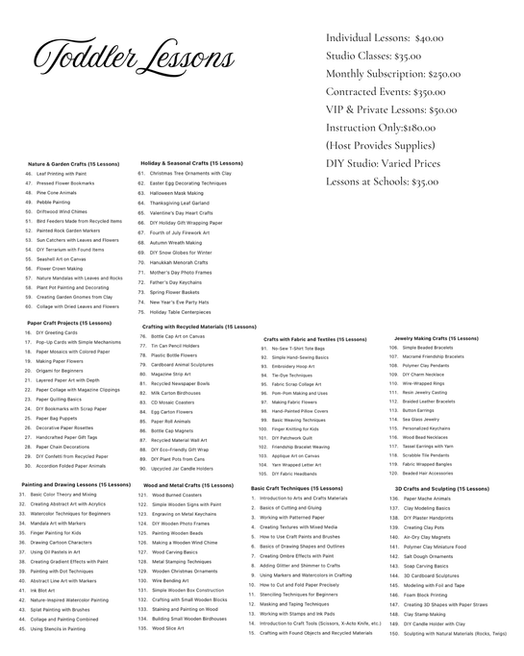 Availability to create a Weekly Class schedule with any entity looking to establish an art program within their organization.